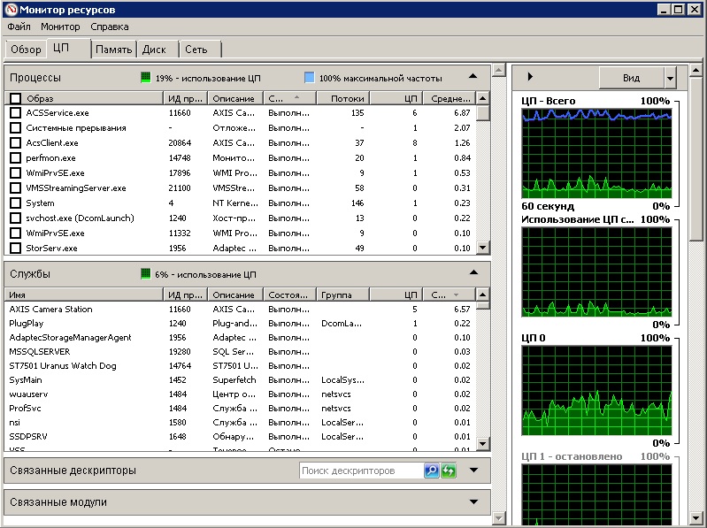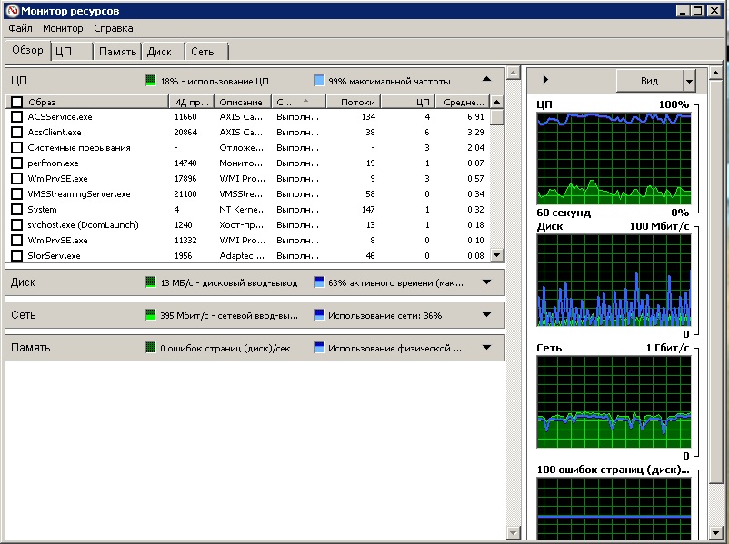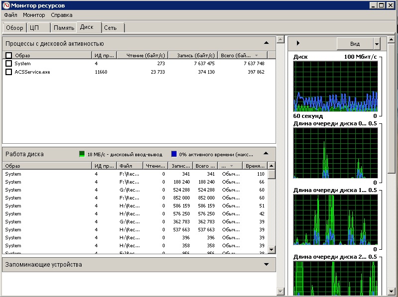 это взаимоисключающие понятия. Построить РАИД0, но в таком случае любой сбой приводит к полной и безвозвратной потере данных. Его можно использовать разве что для временных файлов, потеря которых не критична. В вашем случае упор надо делать не только на диски, но и на сеть. Что касается сервера, что значит нагрузка на процессора? Что делает сервер в этот момент? Я вижу тут загрузку в 19%, это вполне нормально.Flagman007 писал(а):При такой, относительно большой нагрузке на диски здесь нам важнее производительность дисковой группы и минимизация стоимости дискового пространства , нежели их отказоустоичивость.