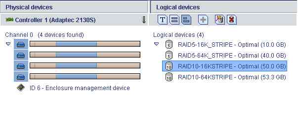 Вобще то на SRCU42E у меня получилось сделать два LUNa на 6х36GB дисках. Первый 15ГБ 0+1 и второй 93ГБ 0+1. Разбираться в тонкостях времени небыло - делалось в последнии дни перед сменой места работы, а оставшийся после меня человек поставил это чудо поставленное и настроенное чисто для опытов в промэксплуатацию. :twisted: Но тьфу, тьфу, тьфу за полгода полет нормальный насколько я знаю. Поянтное дело там BBU и HotSpare винт стоят.
