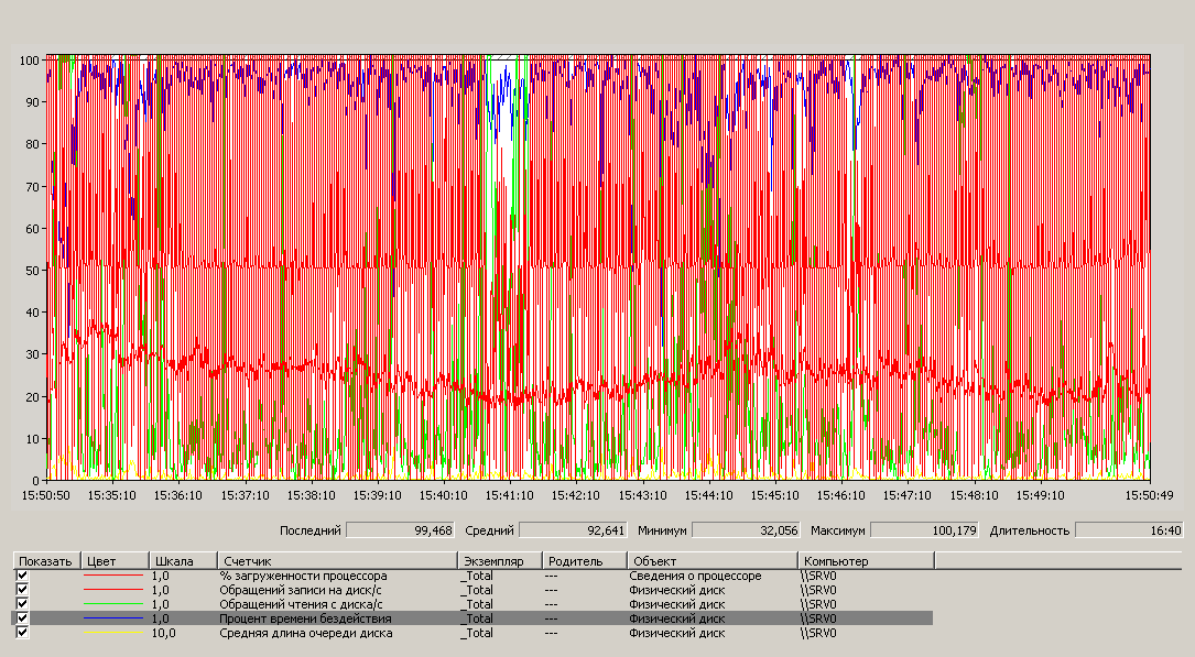 Вот данные перфмона за небольшой период времени
