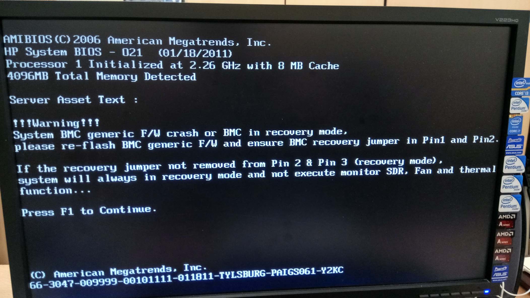 Всем добрый день. Запустил сервер hp proliant ml150 g6 без корзины и вентилятора и сервер написал (фото вложено). Клавиатура не работает стоит на этой заставке и все.