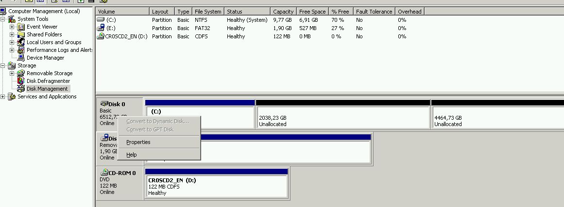 Несколько томов по 2 терабайта - не приемлемо. Динамический том - не создать (уж и не знаю почему, просто неактивна опция)