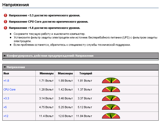Есть сервер от Intel (мать SE7320EP2), на нем установлено ПО Intel Server Manager 8.40 (ISM). Черт дернул запустить Everest на нем - после чего посыпались сообщения о критических значениях датчиков температуры, вентиляторов и т.п., короче всех. После перезагрузки значения всех датчиков пришли в норму, однако ISM показывает противоречивые состояния: значение датчика в зеленой зоне, однако его статус - красный (см. приложенный скриншот).