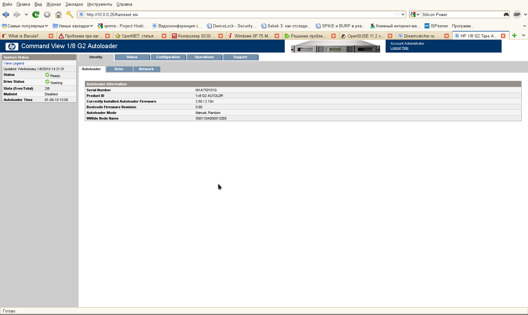 Re: HP StorageWorks 1/8 Tape Autoloader проблемы