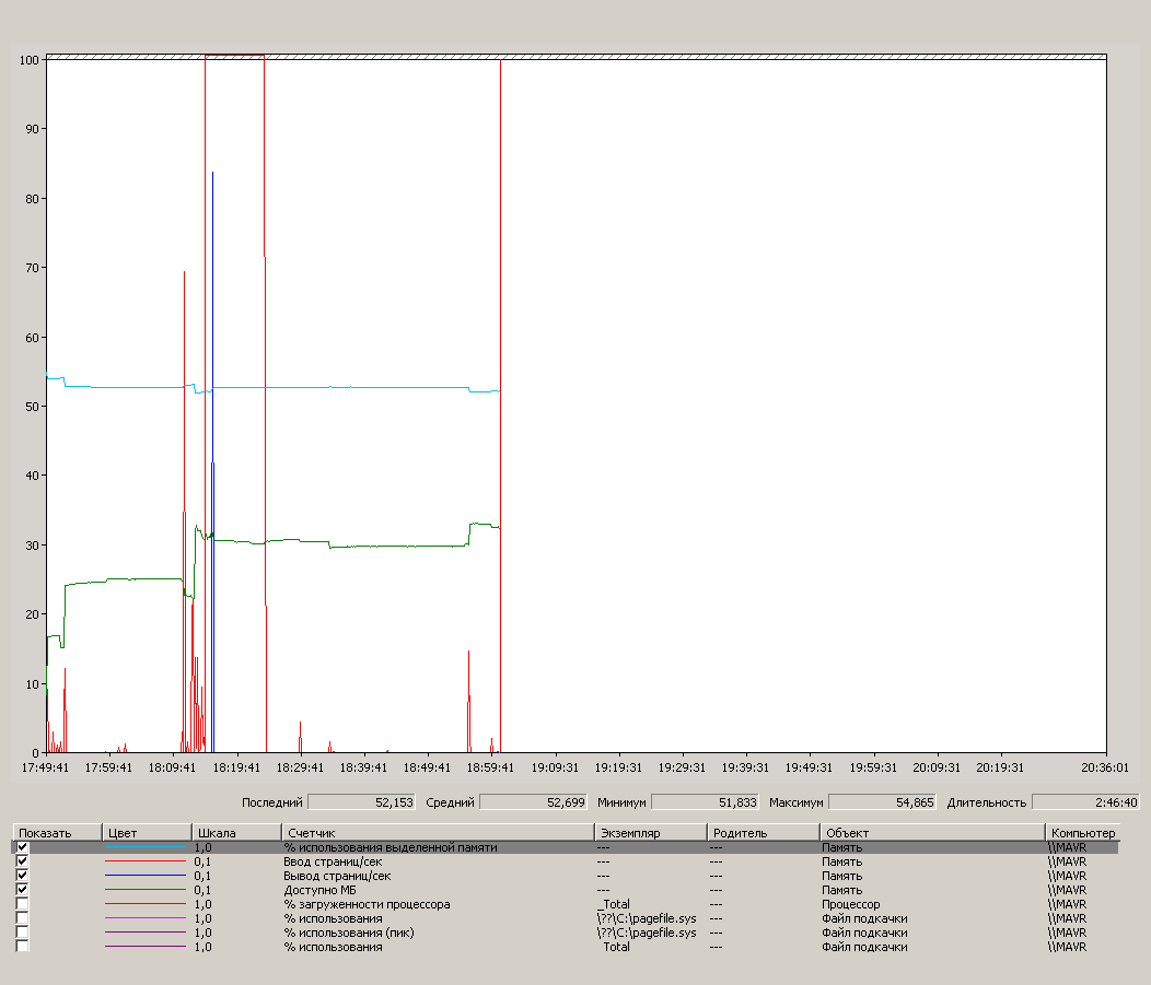 На терминальним было бы неплохо тоже (там по ОЗУ счетчики что-нибудь плохое говорят?), но ограничения ОС.