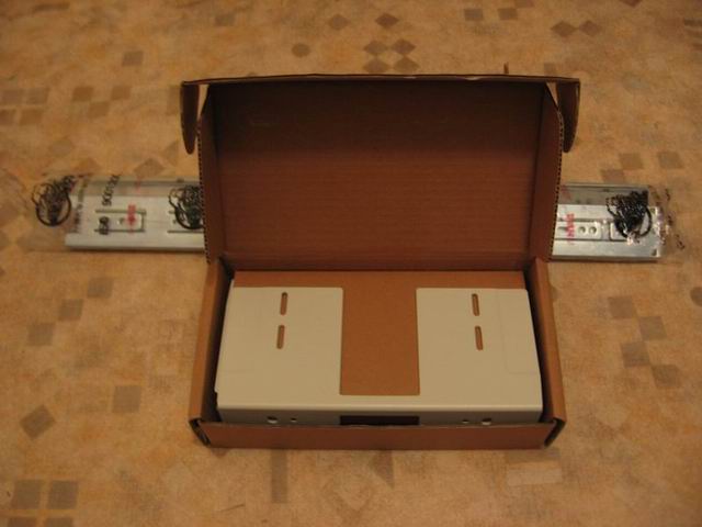 В коробке есть место только для ручек и "ушей" для крепления к 19" профилям шкафа.