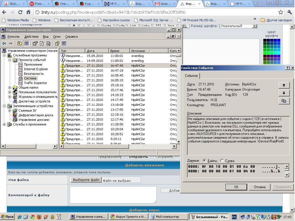 Вот код данной ошибки HpAHCIsr код ошибки 129 и скриншот из ОС а также скриншот из HP ACU.