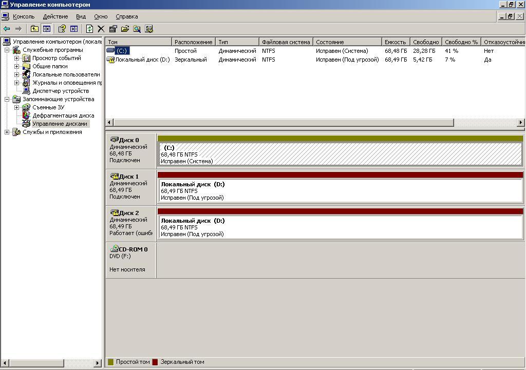 В оснастке Управление дисками у тома Локальный диск (Д) возникает ошибка - Исправен (под угрозой).