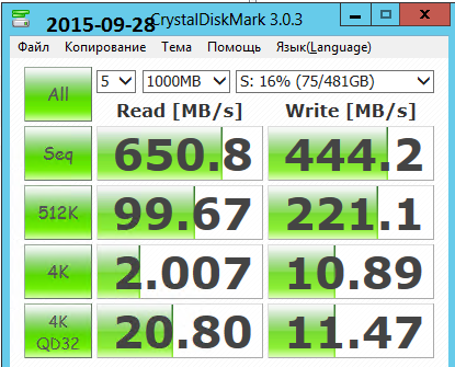 И вот тут то ждал сюрприз, первоначальных результатов не получил (650/444 read/write).