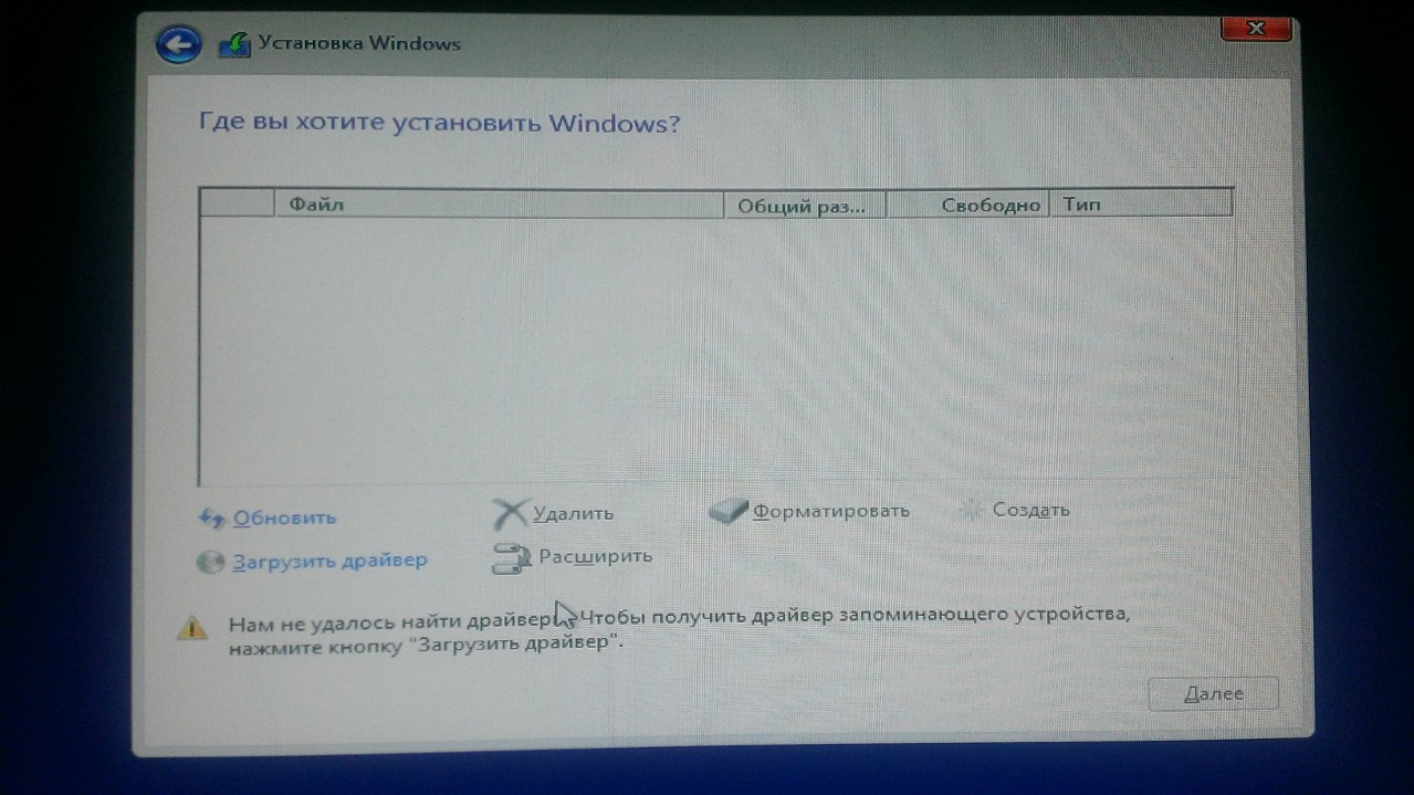 Выполняете установку драйвера с флешки, появляется снова пустое окно.