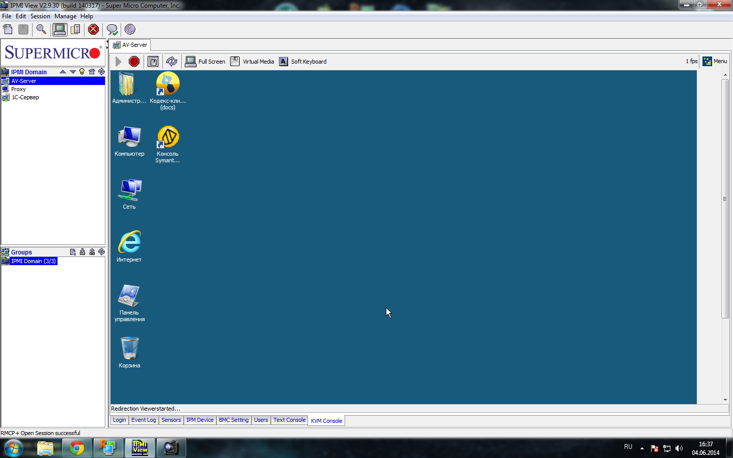 Всем здравствуйте! Есть 3 сервера Supermicro со встроенным IPMI, в шкафу в серверной висят... 2 из них подключены к одному свитчу помимо сетевых карт(у каждого по 2 встроенных) в режиме iee 803.ad через IPMI-модули. И вроде все работает, как надо, НО. смущает, почему через программу IPME-Viewer, я вижу их все 3, даже тот, что не подключен? Но это приятная мелочь. Главный напряг в том, что при запуске KVM-консоли в полноэкранном режиме, те 2 подключенных сервера как то не так как хотелось бы отображается их рабочий стол - видно 3/4 экрана по горизонтали, и нижнюю границу экрана можно нащупать только, если прокрутить колесо мыши!!! Немного другая ситуация с сервером 3:там при нажfтии вкладки KVM такое: скрин1 затем появляется такое:скрин2. И с появившимся java-окном можно творить все. Получается полноценный Radmin как бы. С теми серверами ситуация следующая: при нажатой вкладке KVM, картинка другая скрин3, если на полный экран развернуть, то вот:скрин4. Игрался с разрешениями экрана, не помогло, NetFramework везде 4,5.можно с браузера заходить - картина та же. Конфигурация серв1 : Supermicro 6026T-RF, Windows SERVER STANDART 2008 x64 версия IPME 2.0. Сервер2: Supermicro 6016Т-6F ,Windows SERVER STANDART 2008 x64 версия IPME 2.0 Сервер3: Supermicro 5017Т-TF Windows 7Pro x64,версия IPME 2.0... Хочется, чтобы везде было как на 3, кто то мож знает?