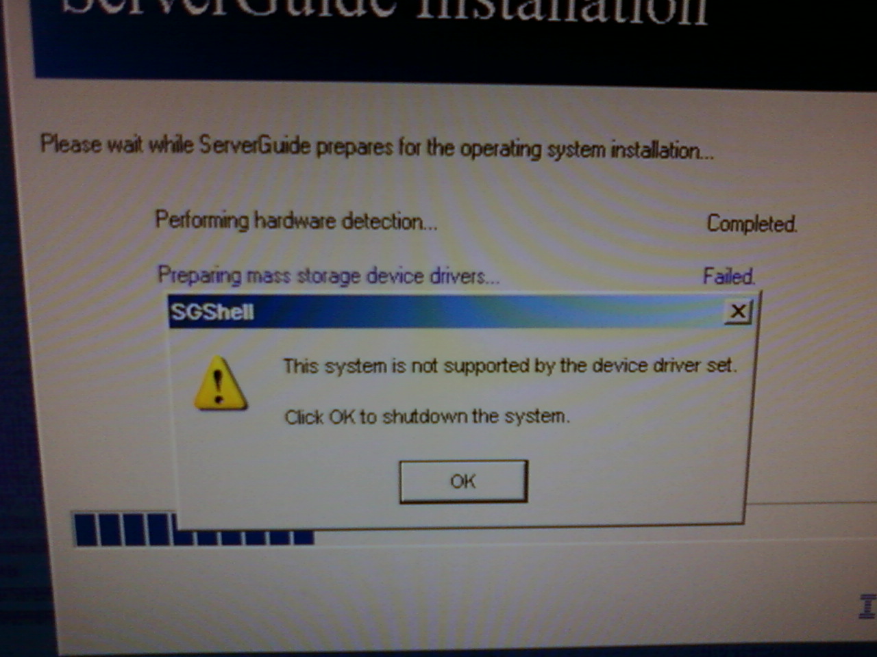 .я так понял что Server Guide не поддерживает какое то устройство или драйвер ему нужен.подскажите как это победить.как ему этот драйвер подсунуть????