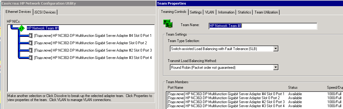 Сеть на HP ML360G5 (2-е интел 1000MT)