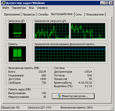Посоветуйте куда копать. Я Программист 1С, на сервер SQL и 1С нас не пускают на работе. Но жалуются на 1С пользователи мне, а с серверами ничего не происходит. Хочется услышать советов.... На основе их буду мучать начальство. Единственное что я могу достать с серваков это картинки загрузки из диспетчера(прилагается).