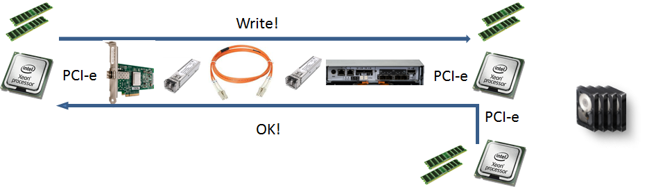 Не забывайте, что в двухконтроллерной СХД надо еще данные для записи зеркалировать во второй контроллер, что отнимает какое-то время.