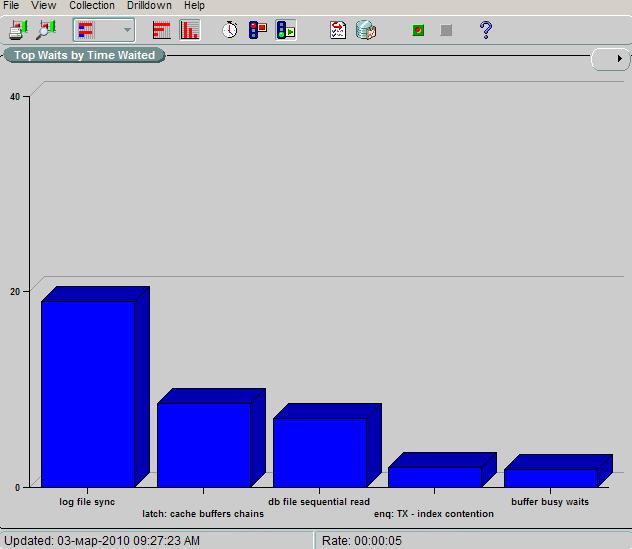 И если несложно - киньте скриншот из enterprise manager, экран performance->top activity, там такой большой цветной график со всеми wait events по классам.