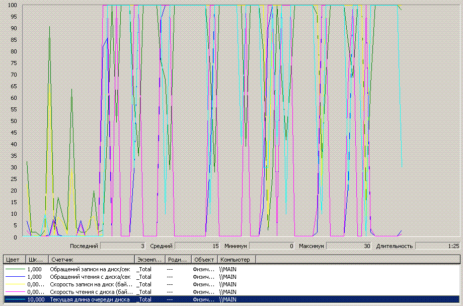 текущая длина очереди диска: макс 30 ср 15