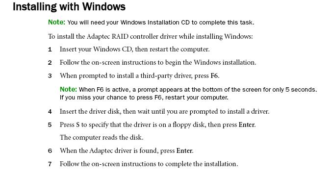 Подскажите плиз, в чем проблема??? контроллер ADAPTEC 3405, в биосе все настроил, создал массив, все в порядке, заранее создал диск со свежими драйверами.. Ставлю инсталляшку Win 2003 server, запускаю загрузку с CD, начинается загрузка, появляется сообщение о том что нажмите F6 для загрузки драйверов, начинаю жмянькать на кнопку..... и ничего... просто не заходит, дальше идет сообщение о том что нажмите F2 для восстановления, проверяю ради интереса по F2 все срабатывает и заходит, тут же перегружаюсь, опять пробую - 0 эффекта, и заранее нажимал и постоянно со скоротью пулемета нажимал - ни какой реакции.. Думал проблема с клавиатурой, поставил другую, на которой F6 работает 100% - ничего... менял клавиатуры и USB и PS/2 - реакции на F6 никакой... Пробовал даже другой загрузочный диск - ничего... В чем проблема подскажите плиз???