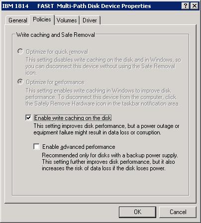 * Select Enable write caching on the disk - this enables the disk-write caching feature of Windows Server 2008 for the selected disk.