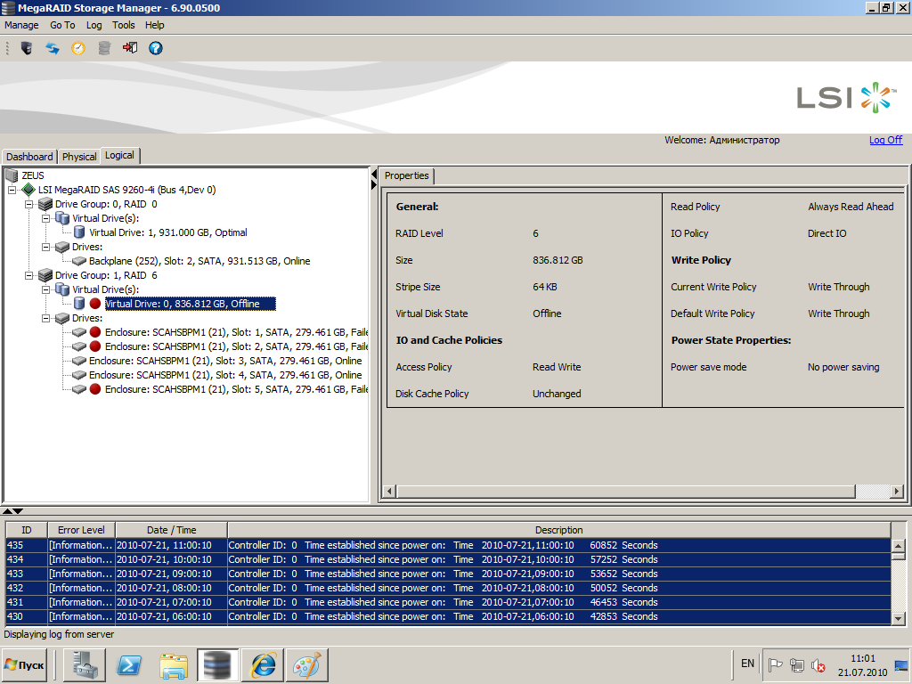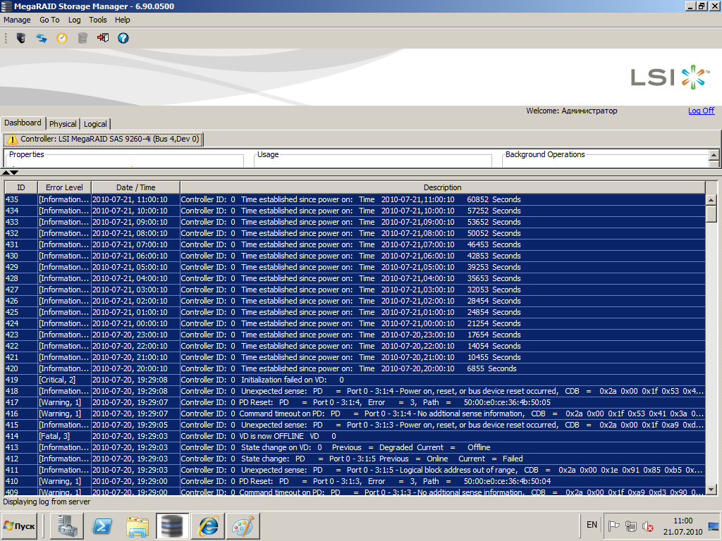 мало того. Возникла стоповая ситуация с контроллером LSI.