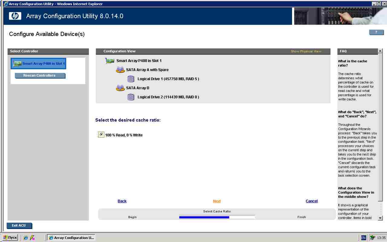 из штатной утилиты пытаюсь изменить соотношение кеша чтения\записи контроллера. (в данный момент 100% чтения)-на необходимом мне шаге- нет возможности изменить соотношение.имею вот такой скриншот(во вложении)