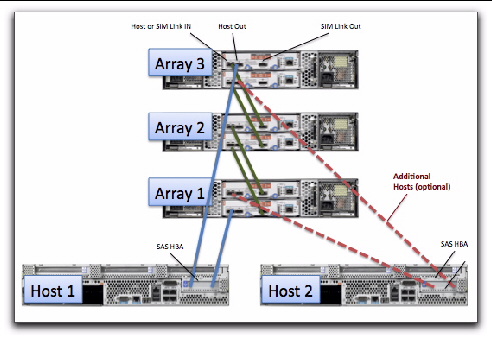 Две дисковые полки с экспандерами, которые контроллер определяет как LSI SAS2x36, на каждой четыре внешних порта.