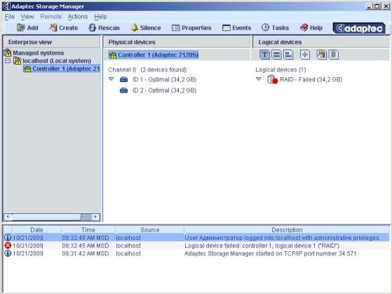 Ситуация – в компьютере использован raid контроллер Adaptec 2120s.