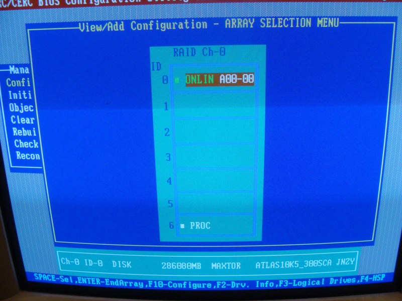 Удалось выставить без рэйда один винчестер - сервер грузится, работает, но заметно медленнее.