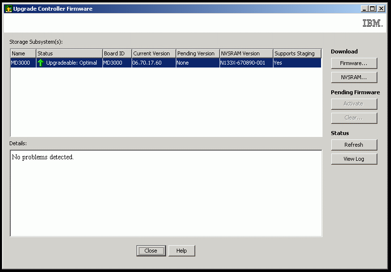 download storagesubsystem firmware, NVSRAM file="C:\FW_RC_07353160_133x.dlp","C:\N133X-735890-005.dlp" activatenow=TRUE;