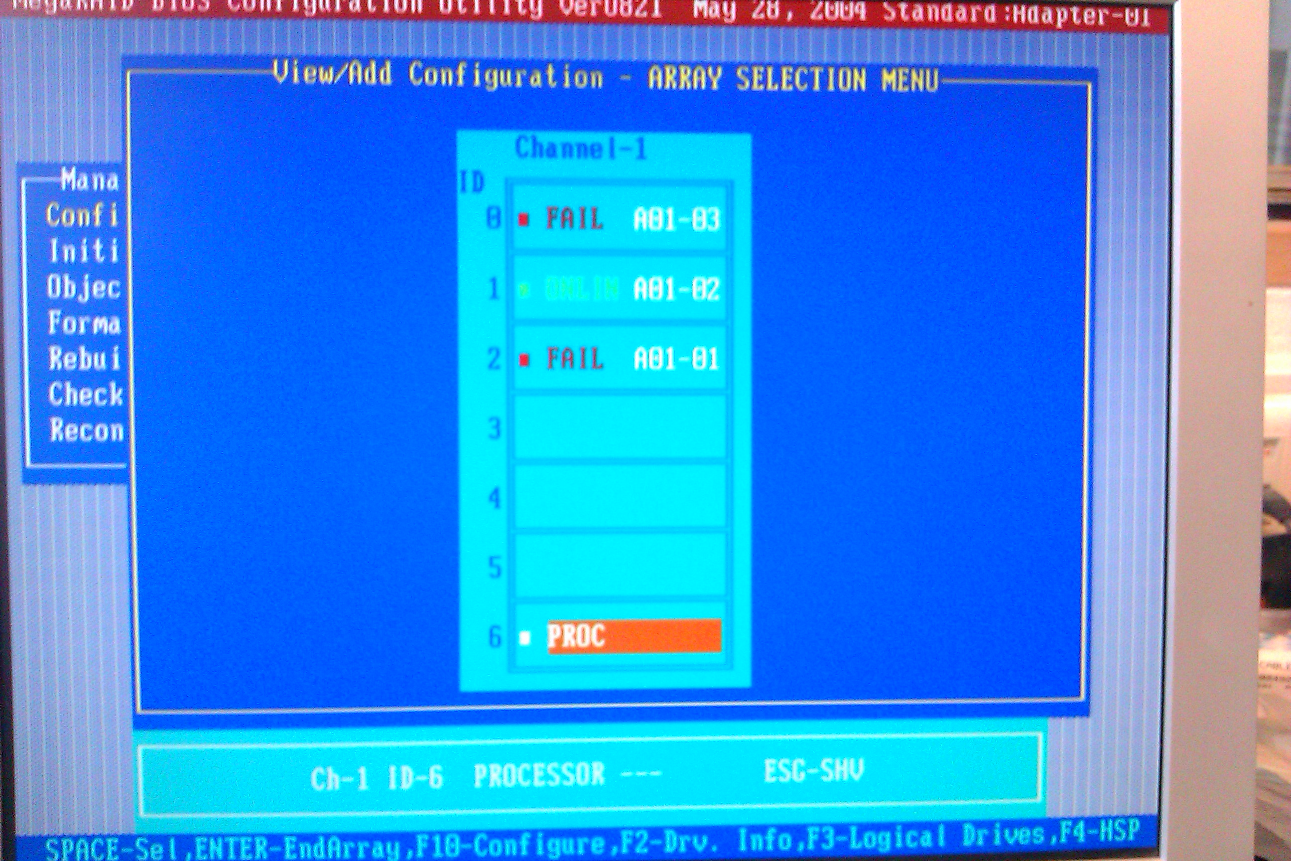 это странно! я скажу больше - даже когда диски вытащены он все ровно выводит их статусы. (FAIL,ONLINE,FAIL)