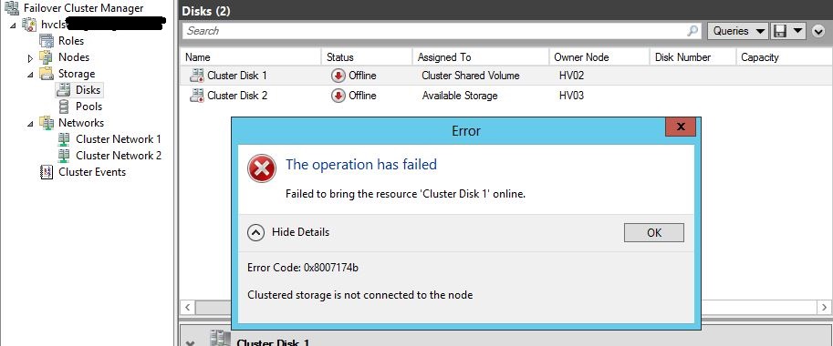 Из вашего письма совершенно непонятно, что, как подключено, какое оборудование, какие контроллеры, какие корзины, что за кластер вольюм. Описывайте подробно схему и поправьте город в профиле.rahman.wanted писал(а):проблема в том что не подключаются кластеры,выдает 0х8007174b ?