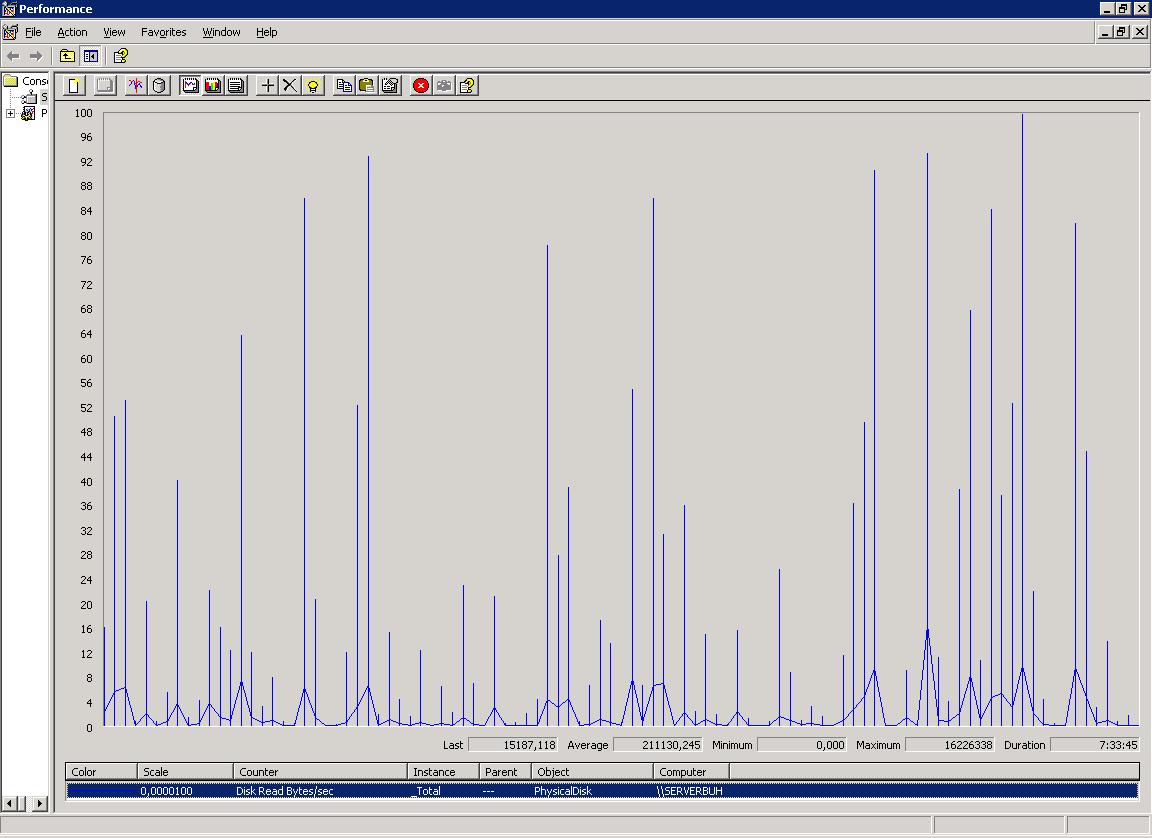 Disk Read Bytes/sec - Максимальное значение 16 226 338