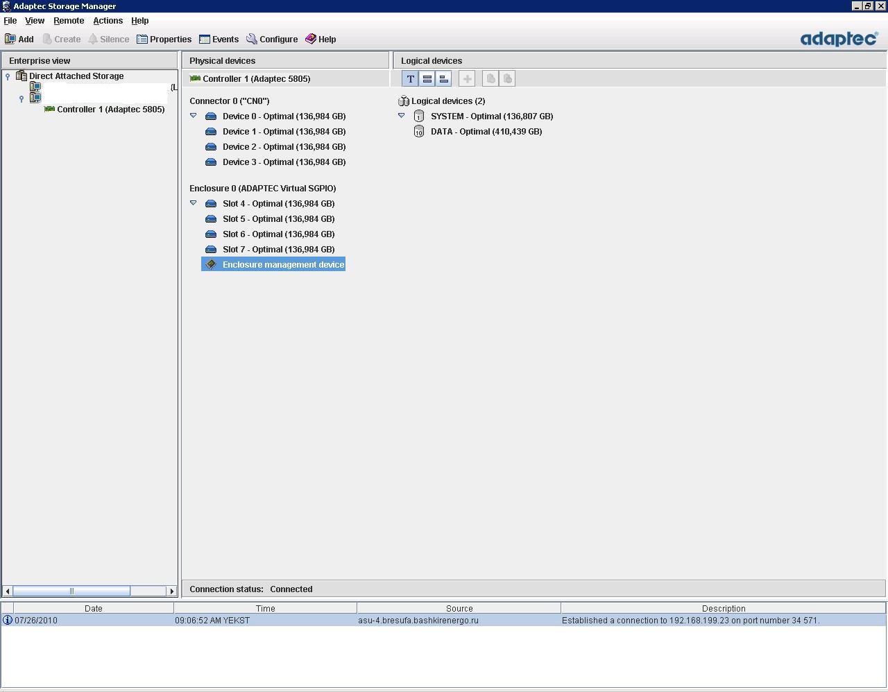 А в чем проблема? Контроллер прекрасно видит SES контроллер на backplane.