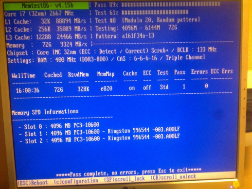 После 3-х суток работы под нагрузкой (ESXi 4.1) он выпал в розовый экран (ругается на память). Память тесты все прошла, правда есть одна особенность:
