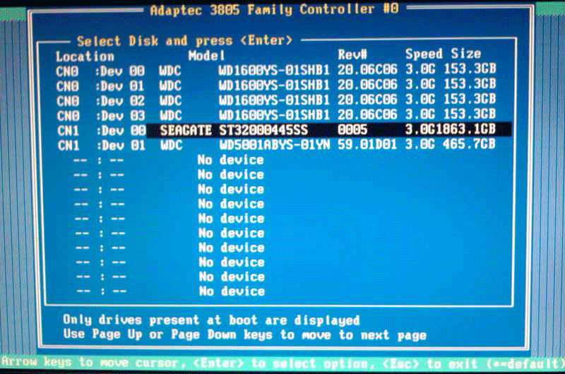 Контроллер Adaptec 3805. На нем запущен старый массив на HDD SATA. Для создания второго массива воткнул два HDD 2 Tb SAS 2.0 Seagate Constellation ES SED <ST32000445SS>. Однако, при попытке создания арая, биос контроллера ругается красным: Что примечательно, через "Дисковые Утилиты" контроллера, все винты (и старые SATA, и новые SAS) видны. Более того, воткнутый винт SAS — форматируется средствами контроллера. Но, менеджер массивов, увы, не дает создавать НОВЫЙ.