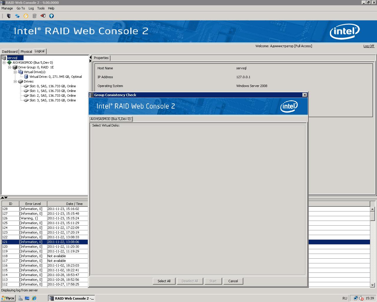 2. Открываю raid web console 2 -> Manage -> Chek Consistincy, а там список пустой (в прикрепленном файле), что не так?