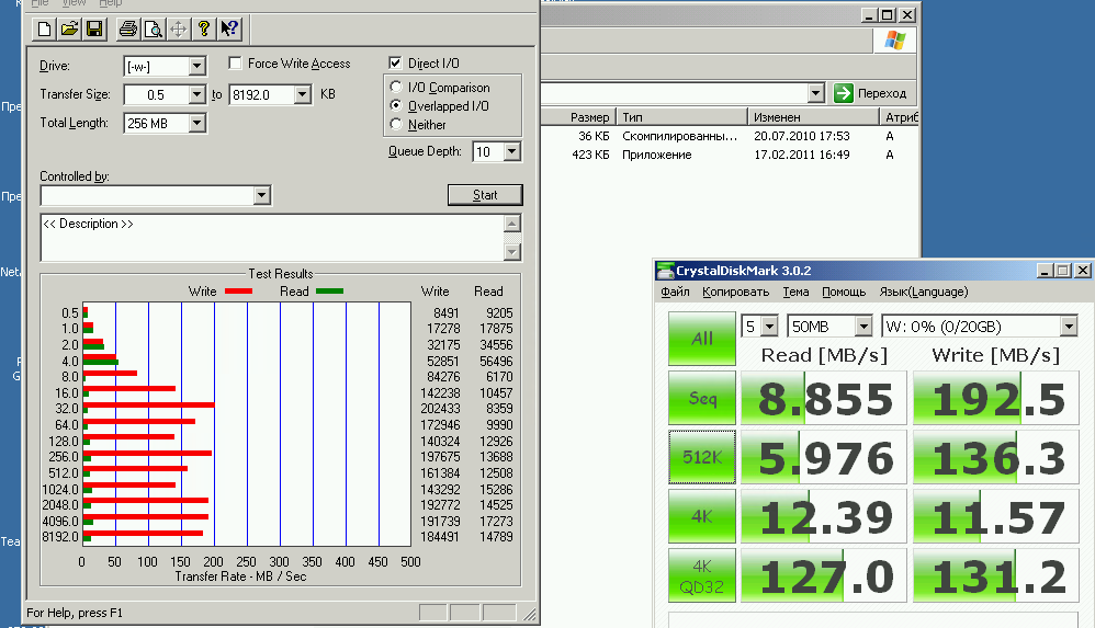 Добавлю информации. При queue depth <= 2 падение производительности чтения происходит после длины передачи 256kb. А при queue depth 3 и более после длины передачи 4kb.