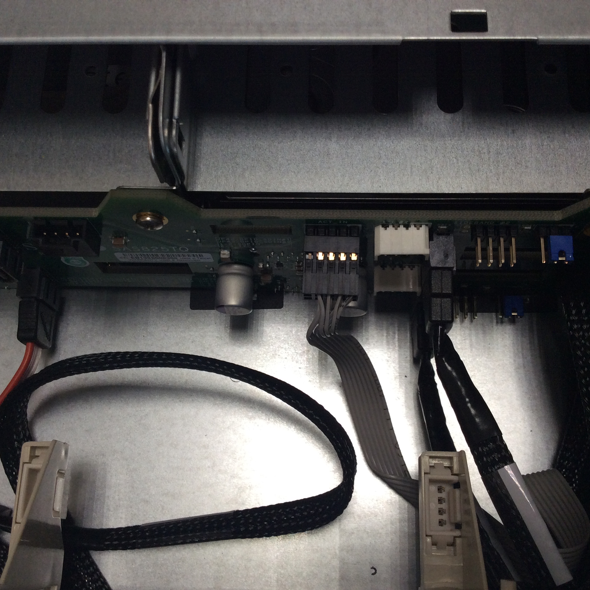 С системной платы с Front Panel Control Header идет шлейф 10-pin на SAS activity LED header (Backplane SAS-825TQ)
