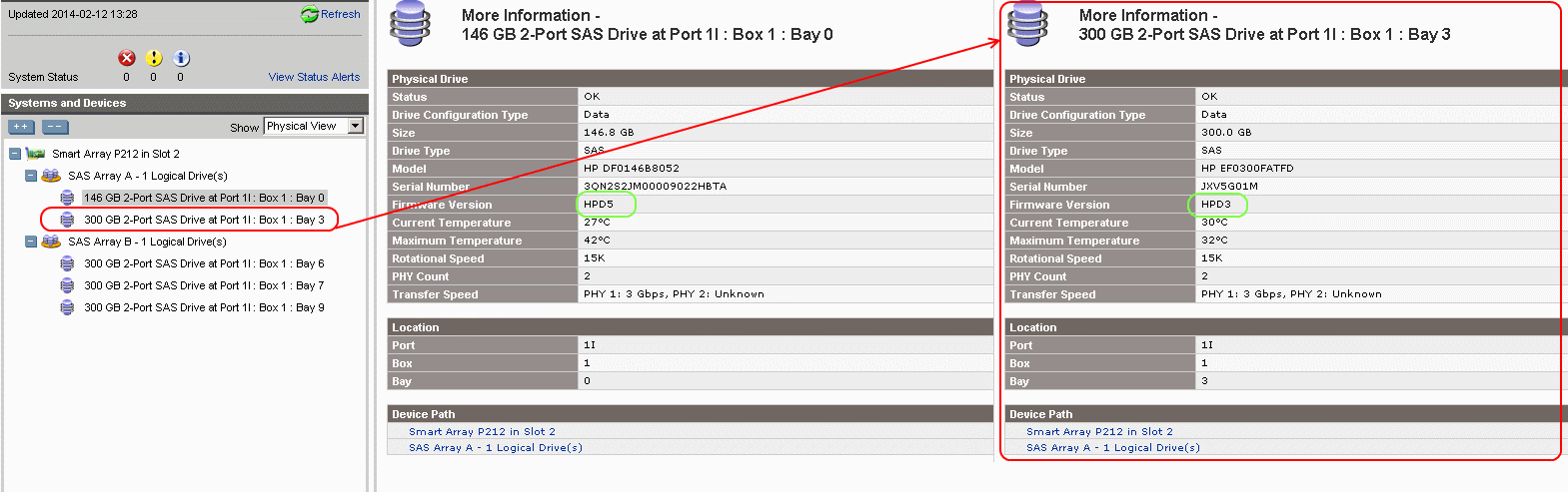Re: Smart Array P212 горит индикатор неисправности на новом HDD