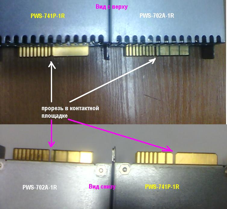 Проблема: приехав в кантору со старым БП и сравнив их выяснил, что разница не только в мощности, но и в конфигурации контактов на "контактной площадке" (см.рис).