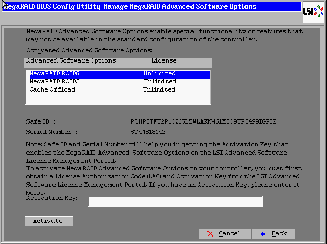 судя по первой странице у вас массив raid6, отсюда вывод - пока не активируете лицензии, ничего контроллер не увидит на этих дисках. про особенности лицензирования ничего не скажу, поищите у производителя.