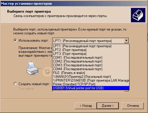 похоже вы были правы с самого начала, то есть принтер надо точно устанавливать как USB Принтер на USB Порт (тот который этим кабелем образован)