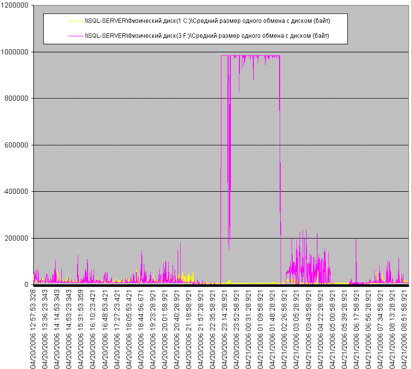 На диске е - логиgs писал(а):Как это ни странно, но с дисковой вроде все в порядке. На всякий случай вложите плиз и другим масштабом - очень плохо видно. Большие пики фиг с ними, а вот что в среднем - хотелось бы рассмотреть подробнее. Просто если очередь в десятки единиц - это уже плохо, а в таком масштабе не видно.