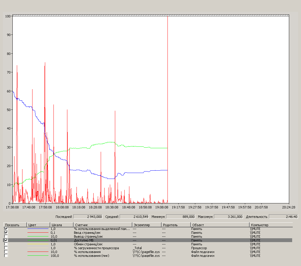 На терминальним было бы неплохо тоже (там по ОЗУ счетчики что-нибудь плохое говорят?), но ограничения ОС.
