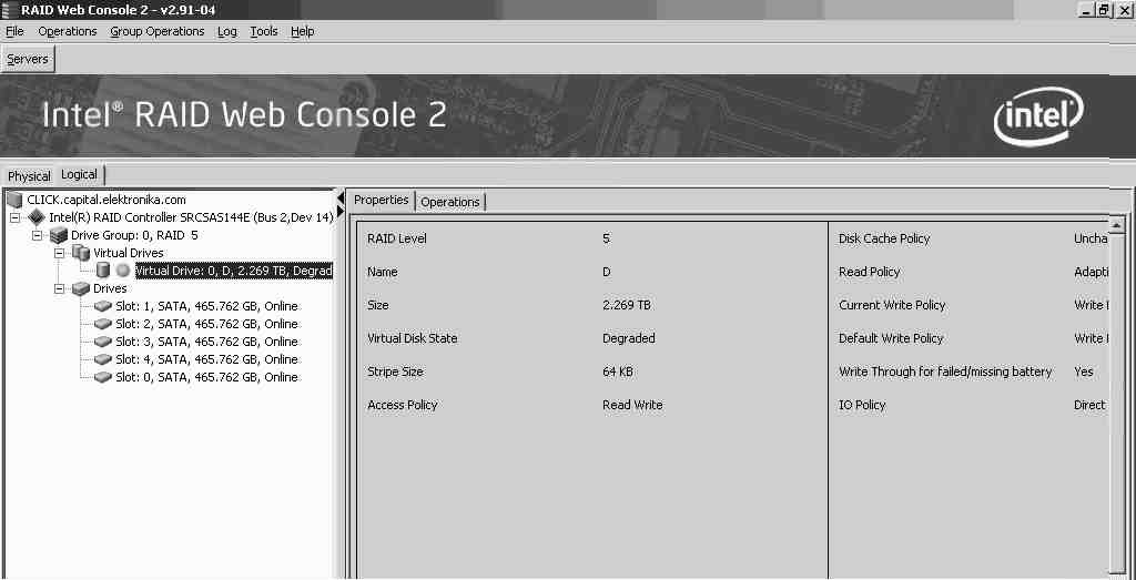 Re: Проблемы с ребилдом на Intel SRCSAS144e