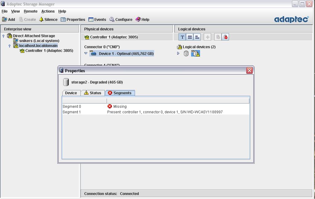 Re: Adaptec 3805 ,ни с того ни с сего выпал (или нет?)новый винт