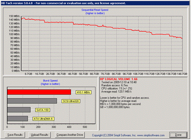 Для проверки, запустил подобные тесты на DL360G6 + Р410i + 8 дисков sas 2.5 по 140Gb