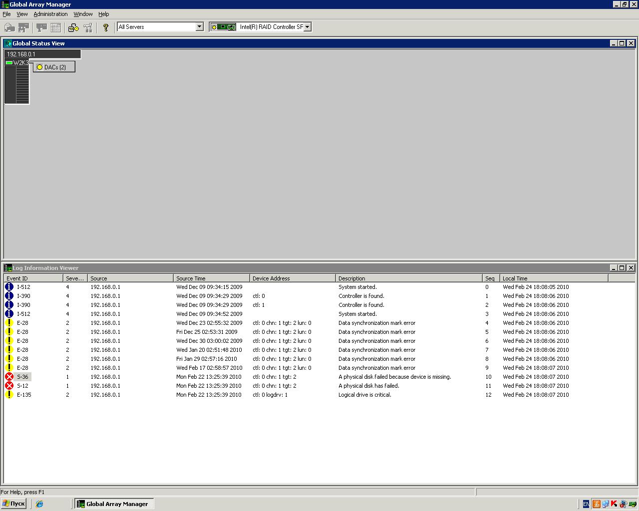 Есть сервер с контроллером MegaRAID SCSI 320-2.
