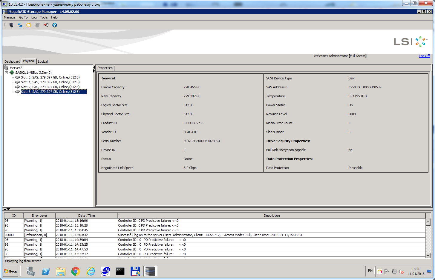 Есть сервер Windows 2008R2, LSI Logic MegaRAID SAS 9211-4i SGL, 4 винта Seagate 300Gb ST3300657SS Cheetah 15K.7 3.5" в raid10.
