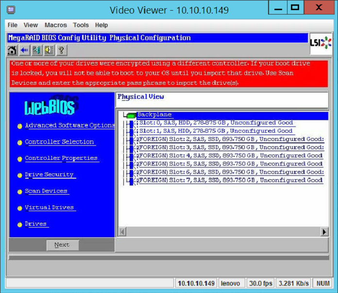Lenovo ThinkServer RD640: проблема с загрузкой из-за запароленного LSI MegaRAID