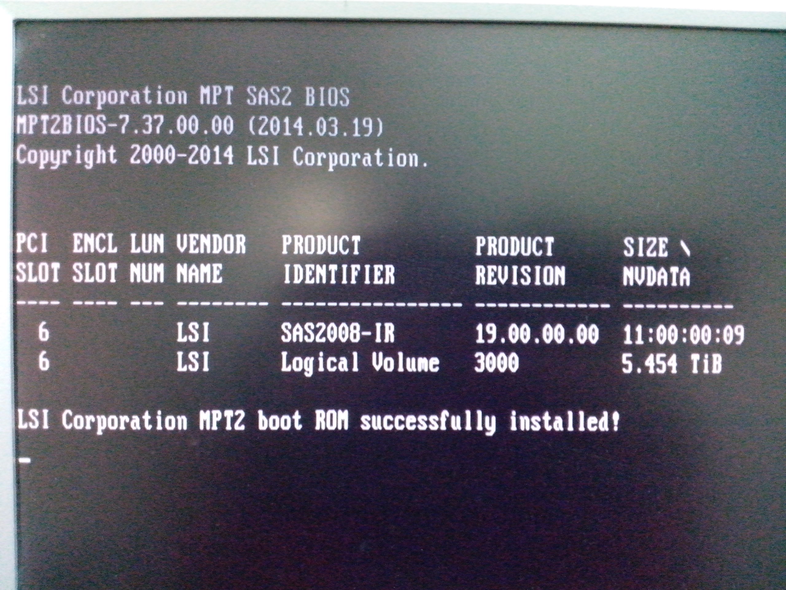 Пока суть да дело, решил купить простенький контроллер от LSI (модель в конфигурации). Установил в пятницу ближе к концу дня, сконфигурил RAID10 из шести дисков, и отбыл на выходные.